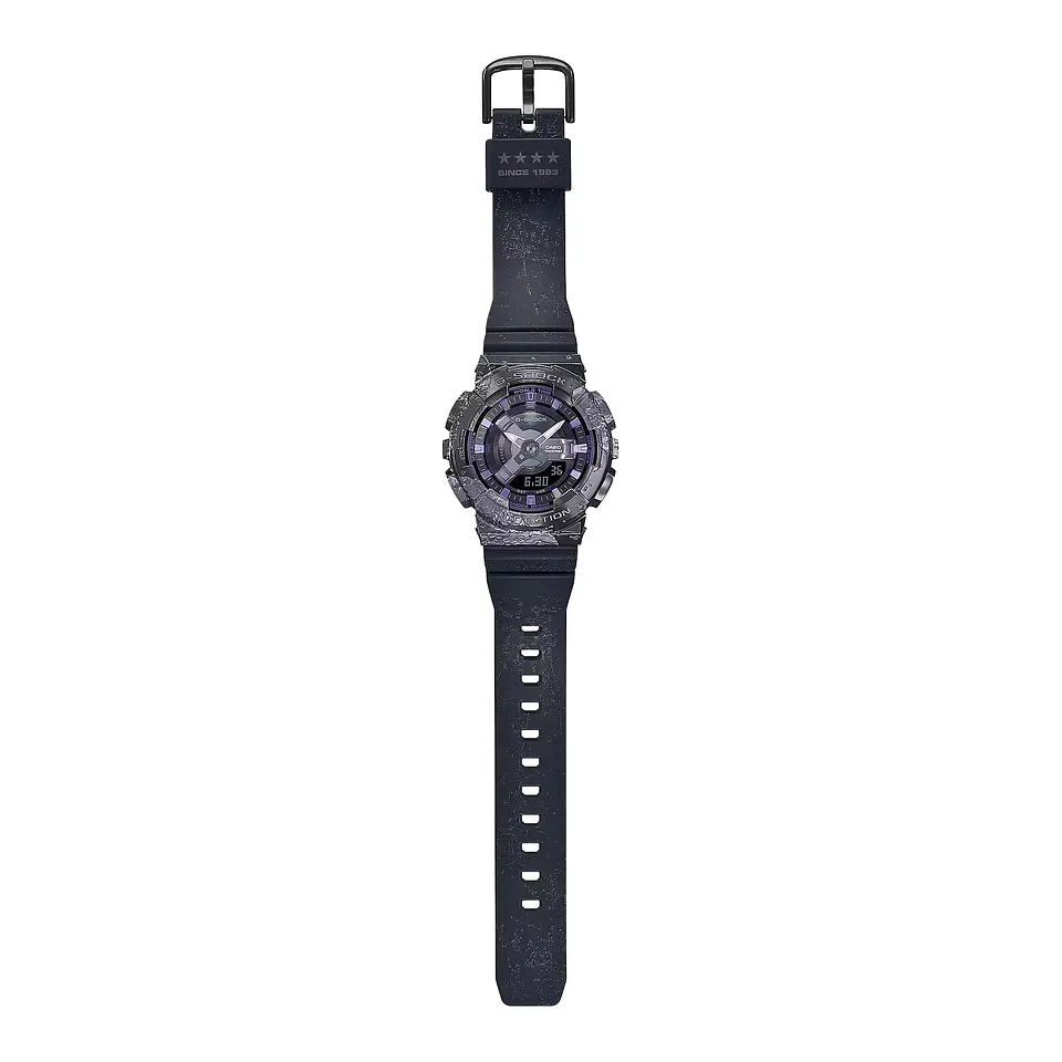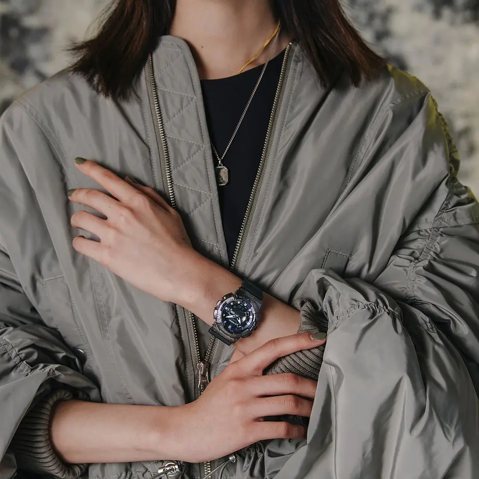 Trace o seu próprio percurso com um relógio G-SHOCK 40th Anniversary Adventurer's Stone de edição limitada. Junte-se a nós para celebrar o 40.º aniversário do G-SHOCK, escolhendo um destes espetaculares relógios revestidos a metal, que são inspirados pelas pedras utilizadas pelos aventureiros para navegar desde a antiguidade. As cores especiais dos minerais utilizados pelos antigos navegadores para encontrarem o seu caminho são reproduzidas nos designs destes relógios com forjamento, revestimento iónico e processos de encobrimento, dando a cada aro metálico um aspeto único. As braceletes são fabricadas com resina colorida ou translúcida e são texturizadas de forma única com técnicas de estampagem a quente e moldagem a cores Garal. Estes relógios de edição limitada celebram o 40.º aniversário do G-SHOCK em pleno: a frase “SINCE 1983” aparece no mostrador, o logótipo "40th" projetado por Eric Haze está gravado na parte traseira da caixa e há quatro estrelas para 40 na presilha da bracelete.